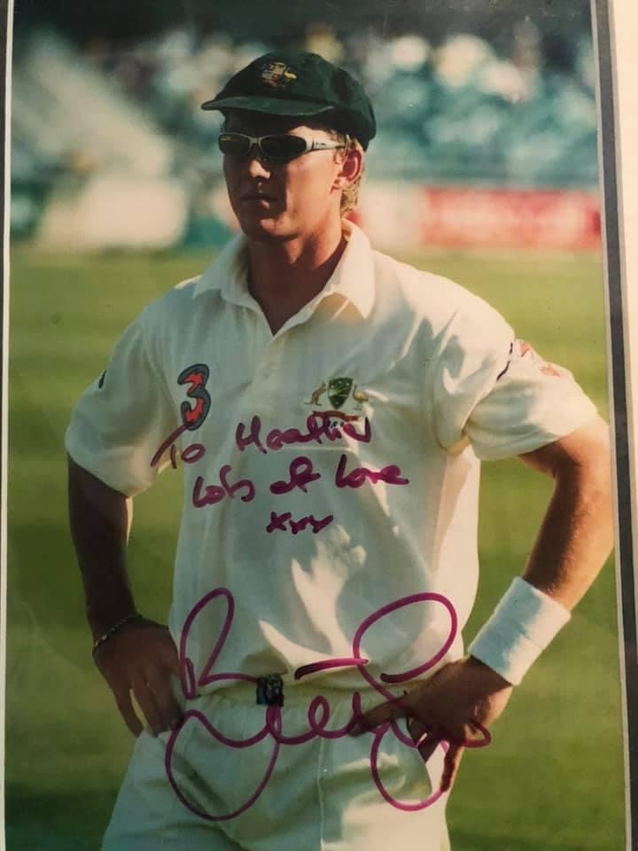 In fact the only autograph I actually recall getting was a rather hilariously embarrassing rampage through an airport to get Brett Lee (yep another cricketer)‘s autograph (and photo). I was with my friend Kerrie and by the time we had finished with him he knew our names. Obviously so he could pass the information on to the police, but that’s neither here nor there.