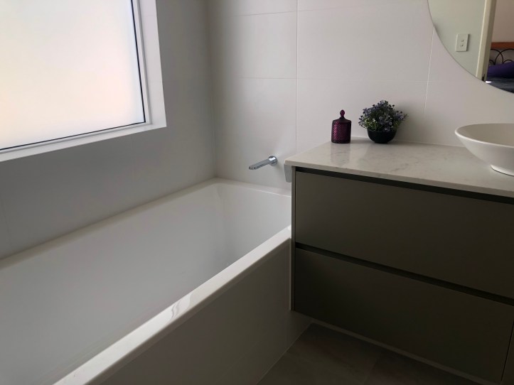There isn’t a door on the en-suite yet, and the shower screen cannot be used until later today – but by goodness the bathtub could be, and was, used last night!!!