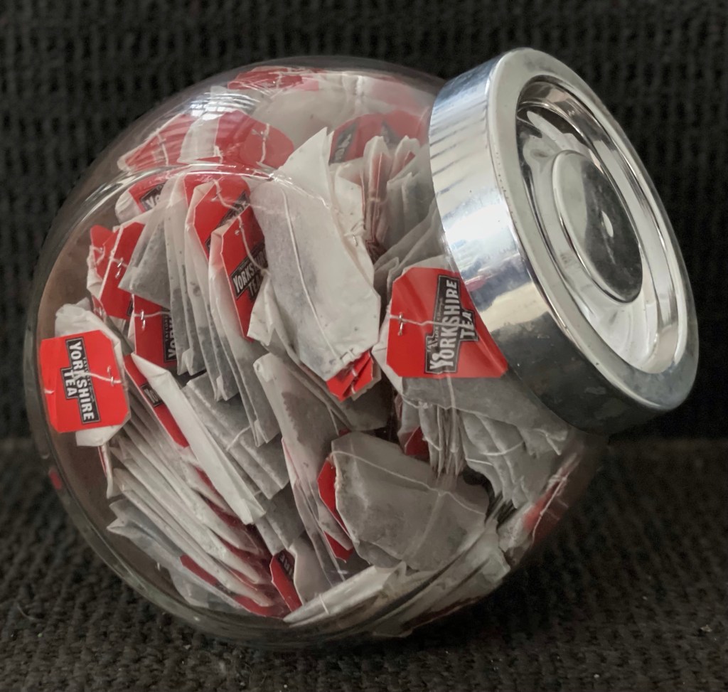Sitting upstairs staring out the window when the tea bag jar is opened? You’ll hear the tiny feet hurtling down the stairs at speed.